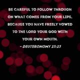 Be careful to follow through on what comes from your lips, because you have freely vowed to the LORD your God with your own mouth.