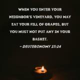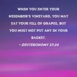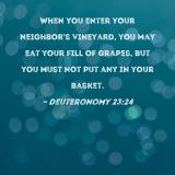When you enter your neighbor's vineyard, you may eat your fill of grapes, but you must not put any in your basket.