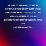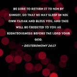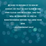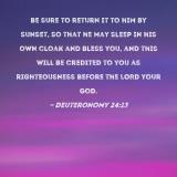 be sure to return it to him by sunset, so that he may sleep in his own cloak and bless you, and this will be credited to you as righteousness before the LORD your God.