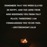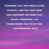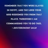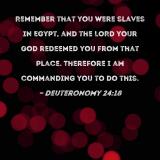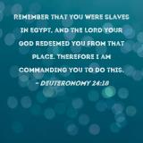 Remember that you were slaves in Egypt, and the LORD your God redeemed you from that place. Therefore I am commanding you to do this.