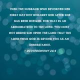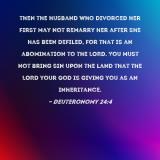 then the husband who divorced her first may not remarry her after she has been defiled, for that is an abomination to the LORD. You must not bring sin upon the land that the LORD your God is giving you as an inheritance.