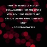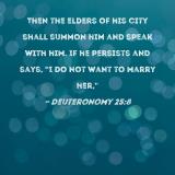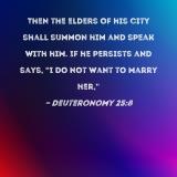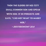 Then the elders of his city shall summon him and speak with him. If he persists and says, "I do not want to marry her,"