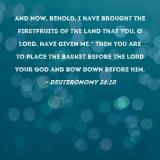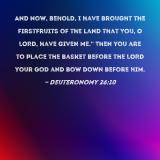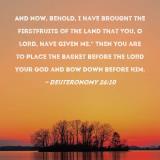 And now, behold, I have brought the firstfruits of the land that You, O LORD, have given me." Then you are to place the basket before the LORD your God and bow down before Him.