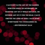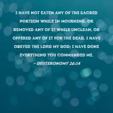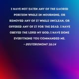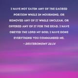 I have not eaten any of the sacred portion while in mourning, or removed any of it while unclean, or offered any of it for the dead. I have obeyed the LORD my God; I have done everything You commanded me.