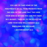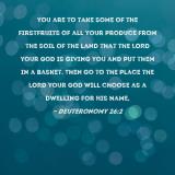 you are to take some of the firstfruits of all your produce from the soil of the land that the LORD your God is giving you and put them in a basket. Then go to the place the LORD your God will choose as a dwelling for His Name,