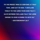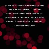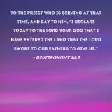 to the priest who is serving at that time, and say to him, "I declare today to the LORD your God that I have entered the land that the LORD swore to our fathers to give us."