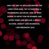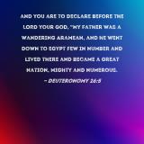 and you are to declare before the LORD your God, "My father was a wandering Aramean, and he went down to Egypt few in number and lived there and became a great nation, mighty and numerous.