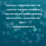 You shall therefore obey the voice of the LORD your God and follow His commandments and statutes I am giving you today."