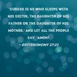 Cursed is he who sleeps with his sister, the daughter of his father or the daughter of his mother.' And let all the people say, 'Amen!'
