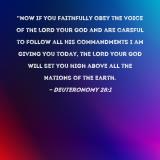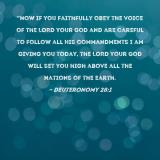 "Now if you faithfully obey the voice of the LORD your God and are careful to follow all His commandments I am giving you today, the LORD your God will set you high above all the nations of the earth.