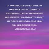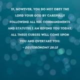 If, however, you do not obey the LORD your God by carefully following all His commandments and statutes I am giving you today, all these curses will come upon you and overtake you:
