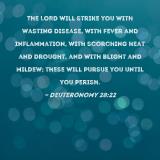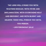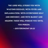 The LORD will strike you with wasting disease, with fever and inflammation, with scorching heat and drought, and with blight and mildew; these will pursue you until you perish.
