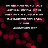 You will plant and cultivate vineyards, but will neither drink the wine nor gather the grapes, because worms will eat them.