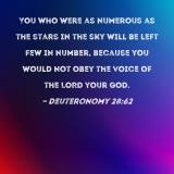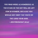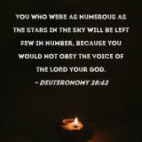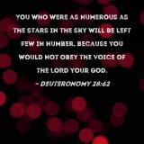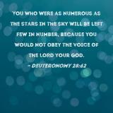 You who were as numerous as the stars in the sky will be left few in number, because you would not obey the voice of the LORD your God.