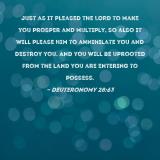 Just as it pleased the LORD to make you prosper and multiply, so also it will please Him to annihilate you and destroy you. And you will be uprooted from the land you are entering to possess.