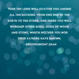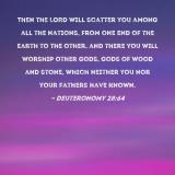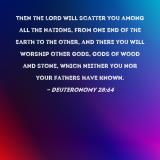 Then the LORD will scatter you among all the nations, from one end of the earth to the other, and there you will worship other gods, gods of wood and stone, which neither you nor your fathers have known.