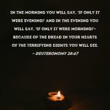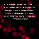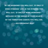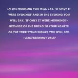In the morning you will say, 'If only it were evening!' and in the evening you will say, 'If only it were morning!'--because of the dread in your hearts of the terrifying sights you will see.