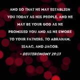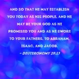 and so that He may establish you today as His people, and He may be your God as He promised you and as He swore to your fathers, to Abraham, Isaac, and Jacob.