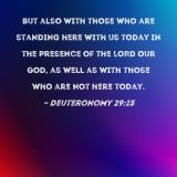 but also with those who are standing here with us today in the presence of the LORD our God, as well as with those who are not here today.