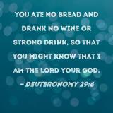You ate no bread and drank no wine or strong drink, so that you might know that I am the LORD your God.