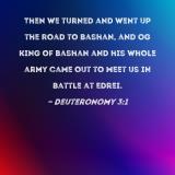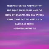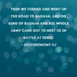 Then we turned and went up the road to Bashan, and Og king of Bashan and his whole army came out to meet us in battle at Edrei.