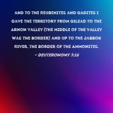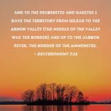 and to the Reubenites and Gadites I gave the territory from Gilead to the Arnon Valley (the middle of the valley was the border) and up to the Jabbok River, the border of the Ammonites.