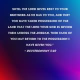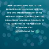 until the LORD gives rest to your brothers as He has to you, and they too have taken possession of the land that the LORD your God is giving them across the Jordan. Then each of you may return to the possession I have given you."