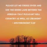Please let me cross over and see the good land beyond the Jordan--that pleasant hill country as well as Lebanon!"