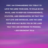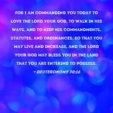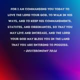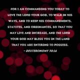 Pictures and Artwork For I am commanding you today to love the LORD your God, to walk in His ways, and to keep His commandments, statutes, and ordinances, so that you may live and increase, and the LORD your God may bless you in the land that you are entering to possess. |