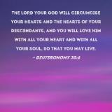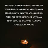 The LORD your God will circumcise your hearts and the hearts of your descendants, and you will love Him with all your heart and with all your soul, so that you may live.