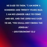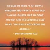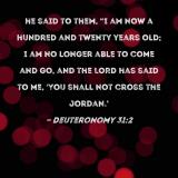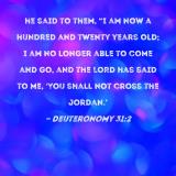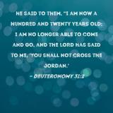 he said to them, "I am now a hundred and twenty years old; I am no longer able to come and go, and the LORD has said to me, 'You shall not cross the Jordan.'