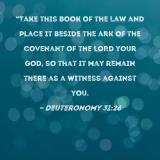 "Take this Book of the Law and place it beside the ark of the covenant of the LORD your God, so that it may remain there as a witness against you.