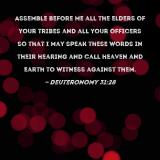 Assemble before me all the elders of your tribes and all your officers so that I may speak these words in their hearing and call heaven and earth to witness against them.