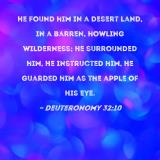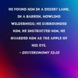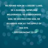 He found him in a desert land, in a barren, howling wilderness; He surrounded him, He instructed him, He guarded him as the apple of His eye.