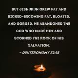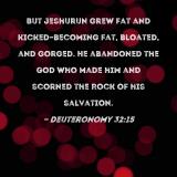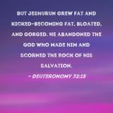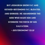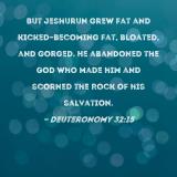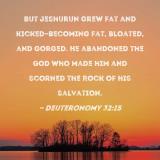 But Jeshurun grew fat and kicked--becoming fat, bloated, and gorged. He abandoned the God who made him and scorned the Rock of his salvation.