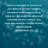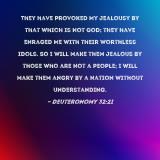 They have provoked My jealousy by that which is not God; they have enraged Me with their worthless idols. So I will make them jealous by those who are not a people; I will make them angry by a nation without understanding.