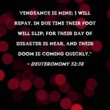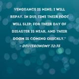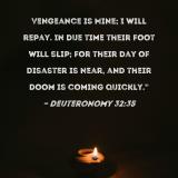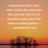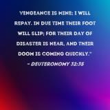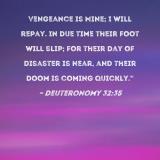 Vengeance is Mine; I will repay. In due time their foot will slip; for their day of disaster is near, and their doom is coming quickly."