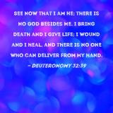 See now that I am He; there is no God besides Me. I bring death and I give life; I wound and I heal, and there is no one who can deliver from My hand.