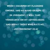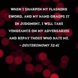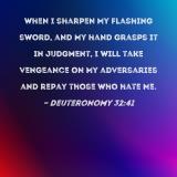 when I sharpen My flashing sword, and My hand grasps it in judgment, I will take vengeance on My adversaries and repay those who hate Me.