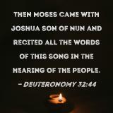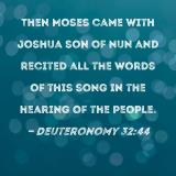 Then Moses came with Joshua son of Nun and recited all the words of this song in the hearing of the people.