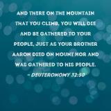 And there on the mountain that you climb, you will die and be gathered to your people, just as your brother Aaron died on Mount Hor and was gathered to his people.