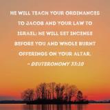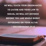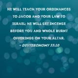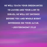 He will teach Your ordinances to Jacob and Your law to Israel; he will set incense before You and whole burnt offerings on Your altar.