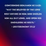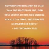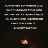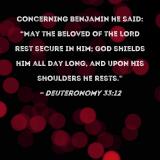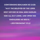 Concerning Benjamin he said: "May the beloved of the LORD rest secure in Him; God shields him all day long, and upon His shoulders he rests."
