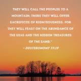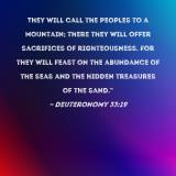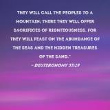 They will call the peoples to a mountain; there they will offer sacrifices of righteousness. For they will feast on the abundance of the seas and the hidden treasures of the sand."