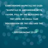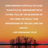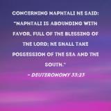 Concerning Naphtali he said: "Naphtali is abounding with favor, full of the blessing of the LORD; he shall take possession of the sea and the south."