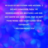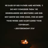 He said of his father and mother, 'I do not consider them.' He disregarded his brothers and did not know his own sons, for he kept Your word and maintained Your covenant.
