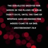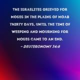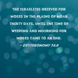 The Israelites grieved for Moses in the plains of Moab thirty days, until the time of weeping and mourning for Moses came to an end.