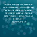 The LORD, however, was angry with me on account of you, and He swore that I would not cross the Jordan to enter the good land that the LORD your God is giving you as an inheritance.