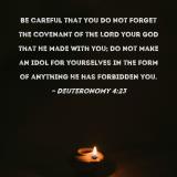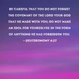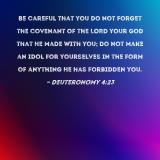 Be careful that you do not forget the covenant of the LORD your God that He made with you; do not make an idol for yourselves in the form of anything He has forbidden you.