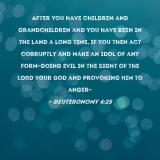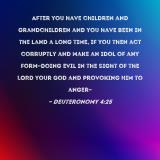 After you have children and grandchildren and you have been in the land a long time, if you then act corruptly and make an idol of any form--doing evil in the sight of the LORD your God and provoking Him to anger--